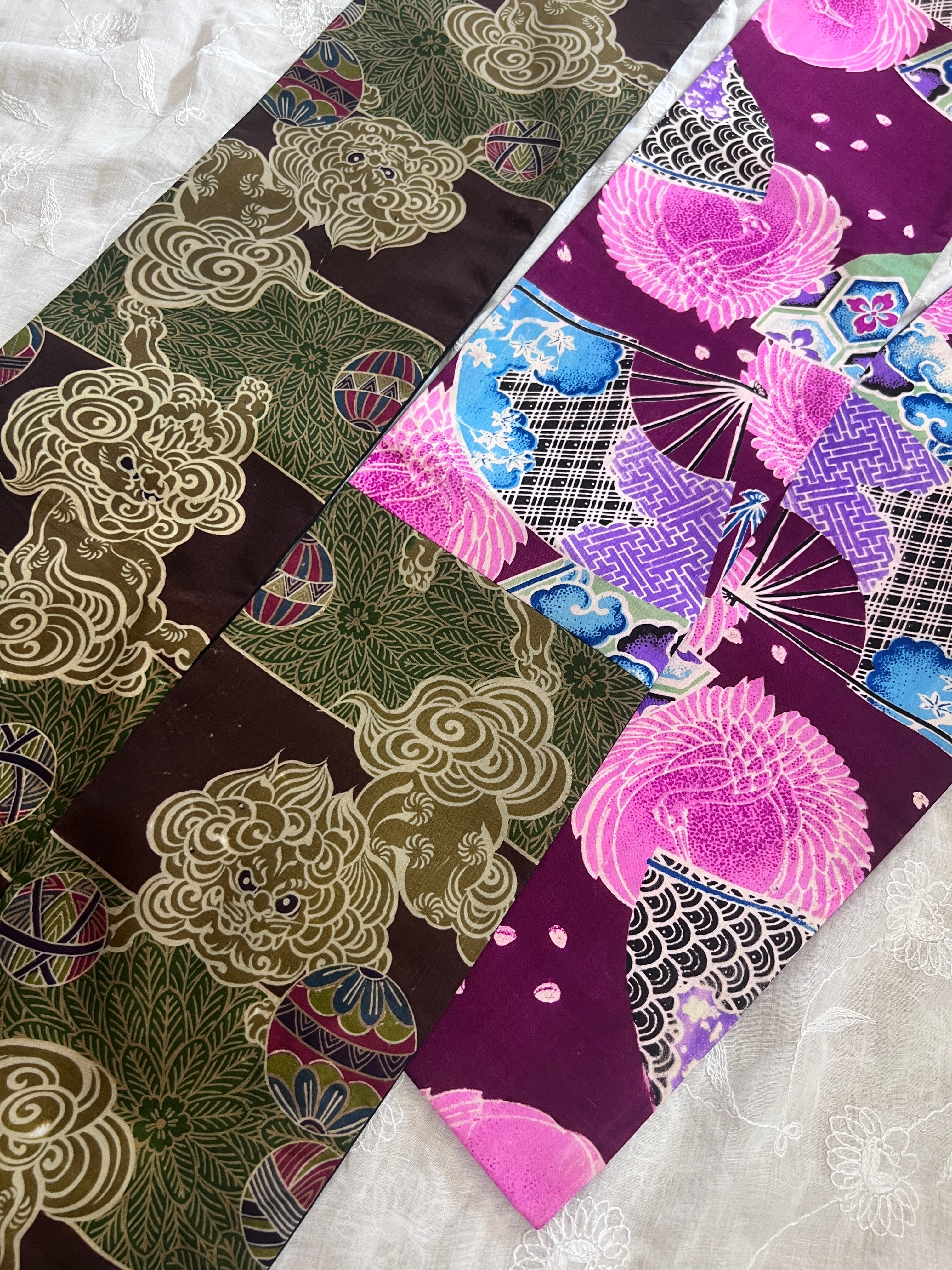 *アンティーク着物をリメイクした半幅帯です♪全部で4柄楽しめる遊べる帯*