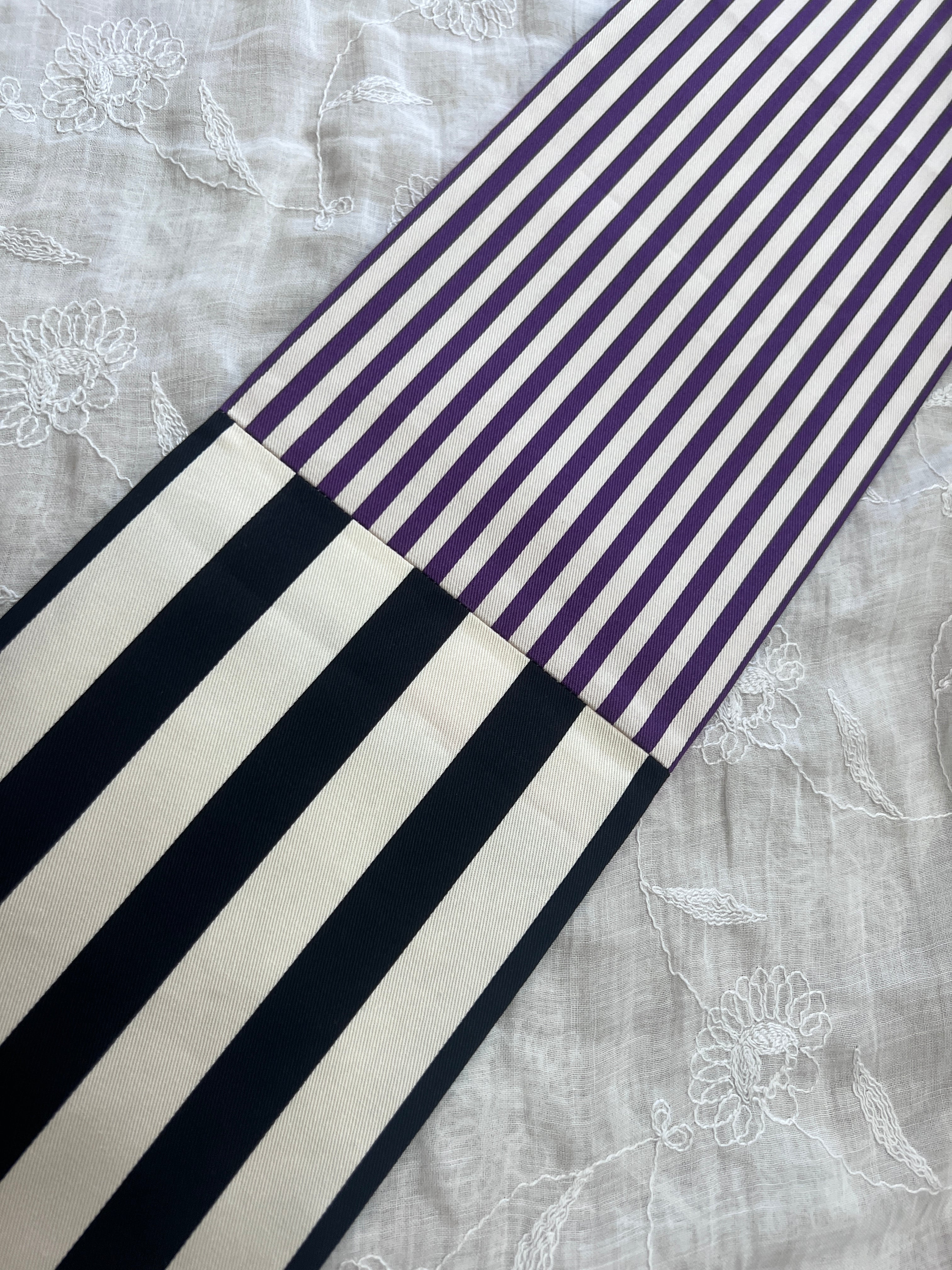 ファブリック面は白黒縞と紫細縞を合わせました。