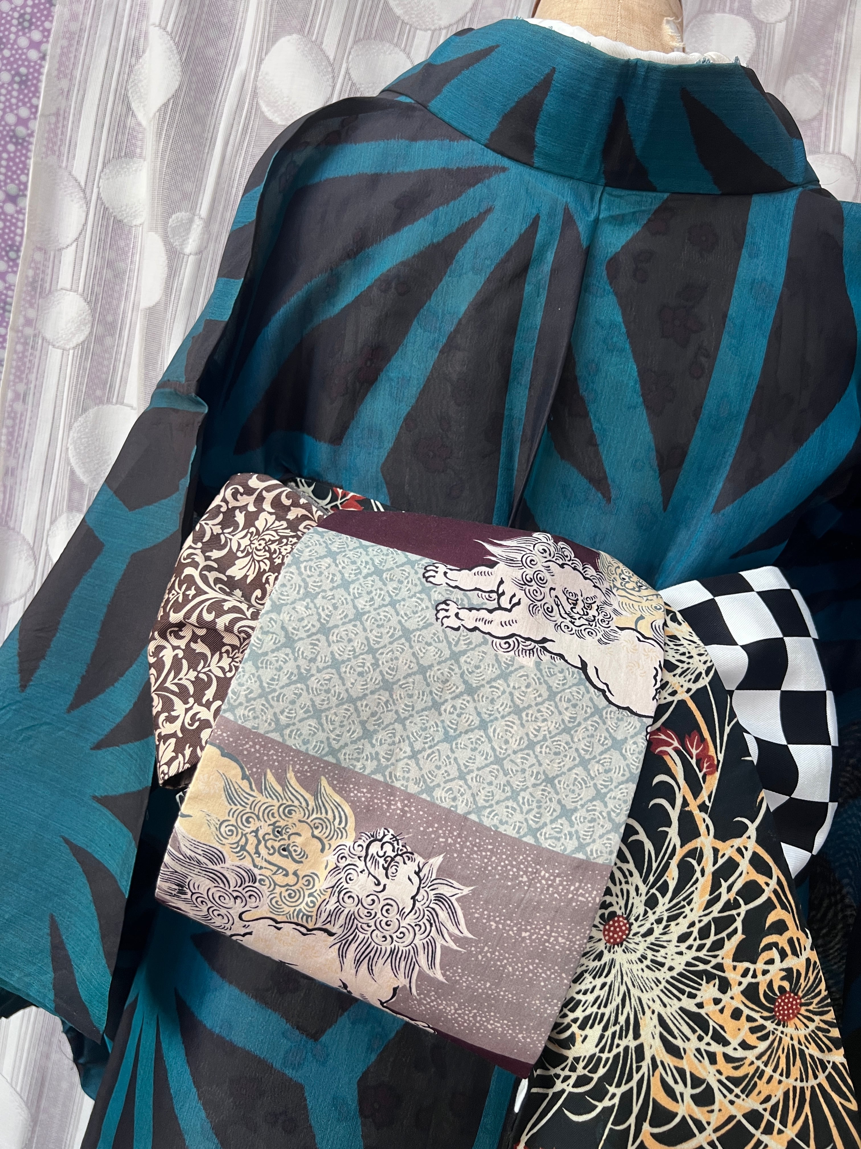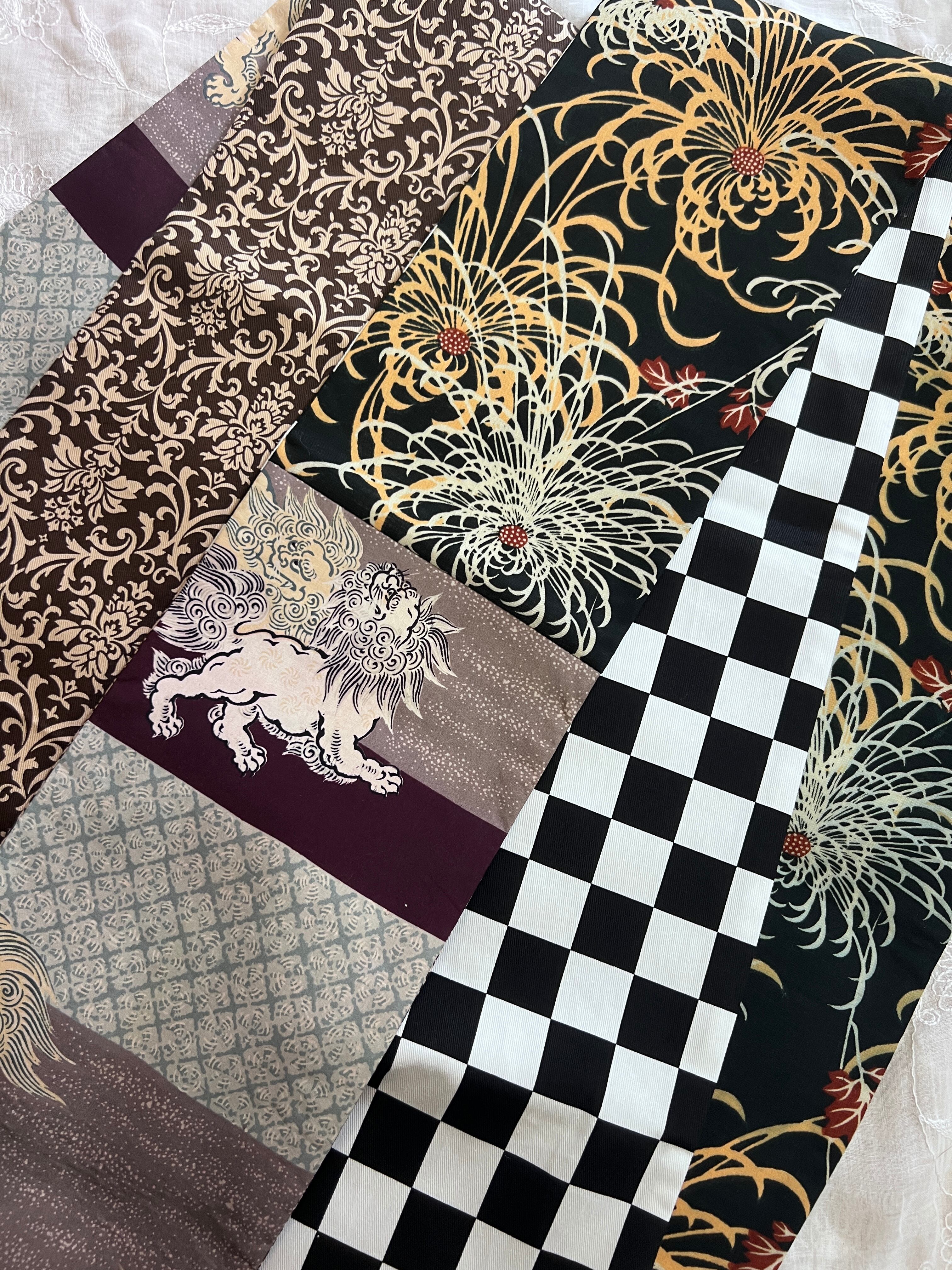 *アンティーク着物をリメイクした半幅帯です♪全部で4柄楽しめる遊べる帯*